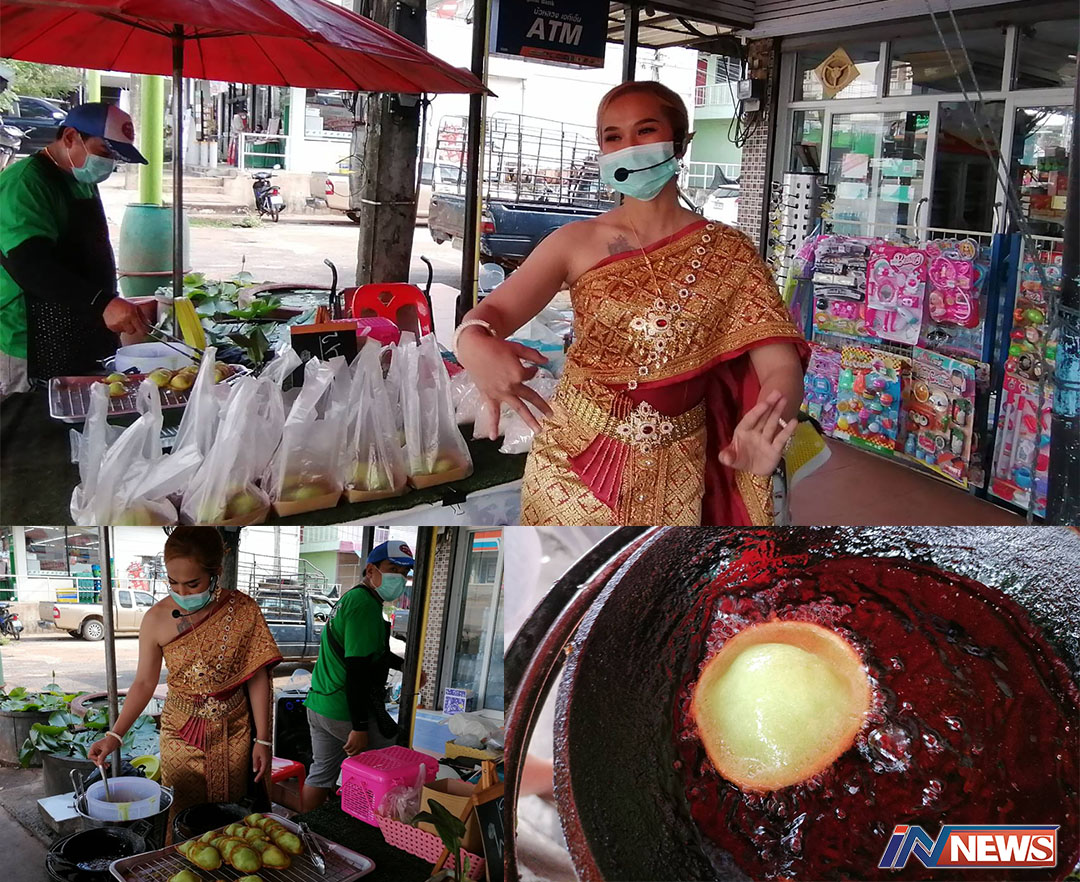 อดีตนางเอกหมอลำเมืองชัยภูมิน้ำใจงาม ใส่ชุดหมอลำทำขนมฝักบัวแจกชาวบ้าน
