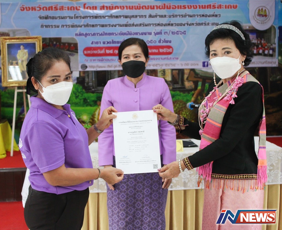 ศรีสะเกษ- ดร.กัลยาณี นายกฯท่องเที่ยวศรีสะเกษมอบวุฒิบัตรสร้างอาชีพรุ่น 3 หมอนวดแผนไทย รุ่นสุดท้ายปี 2565