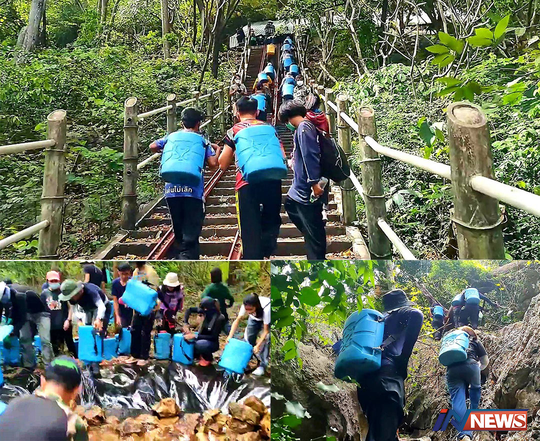 จิตอาสาเกือบ100คนช่วยแบกน้ำ18ลิตร ขึ้นเขาช่วยสัตว์ป่าหลังเกิดความแห้งแล้ง
