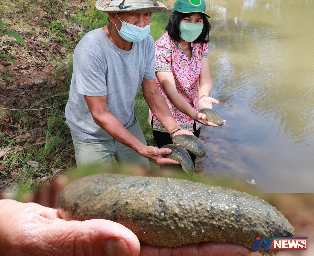 พังงา-ชาวเกาะยาวน้อยเลี้ยงปลิงทะเลขาวในบ่อดิน ขายได้ราคาดีผลผลิตไม่พอกับความต้องการ