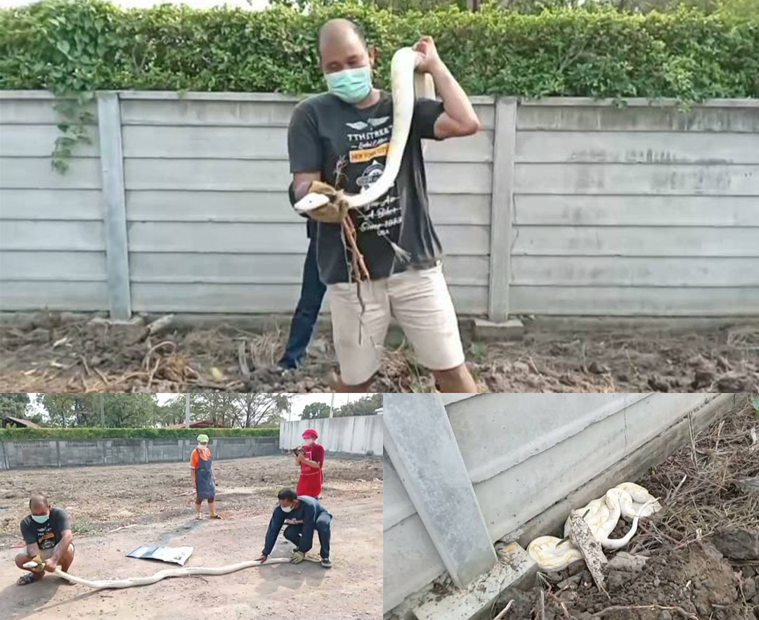 คนขับแบคโฮผงะเจองูเหลือมสีทองอร่าม คาดงูเจ้าที่เจ้าทางมาให้โชคให้ลาภ