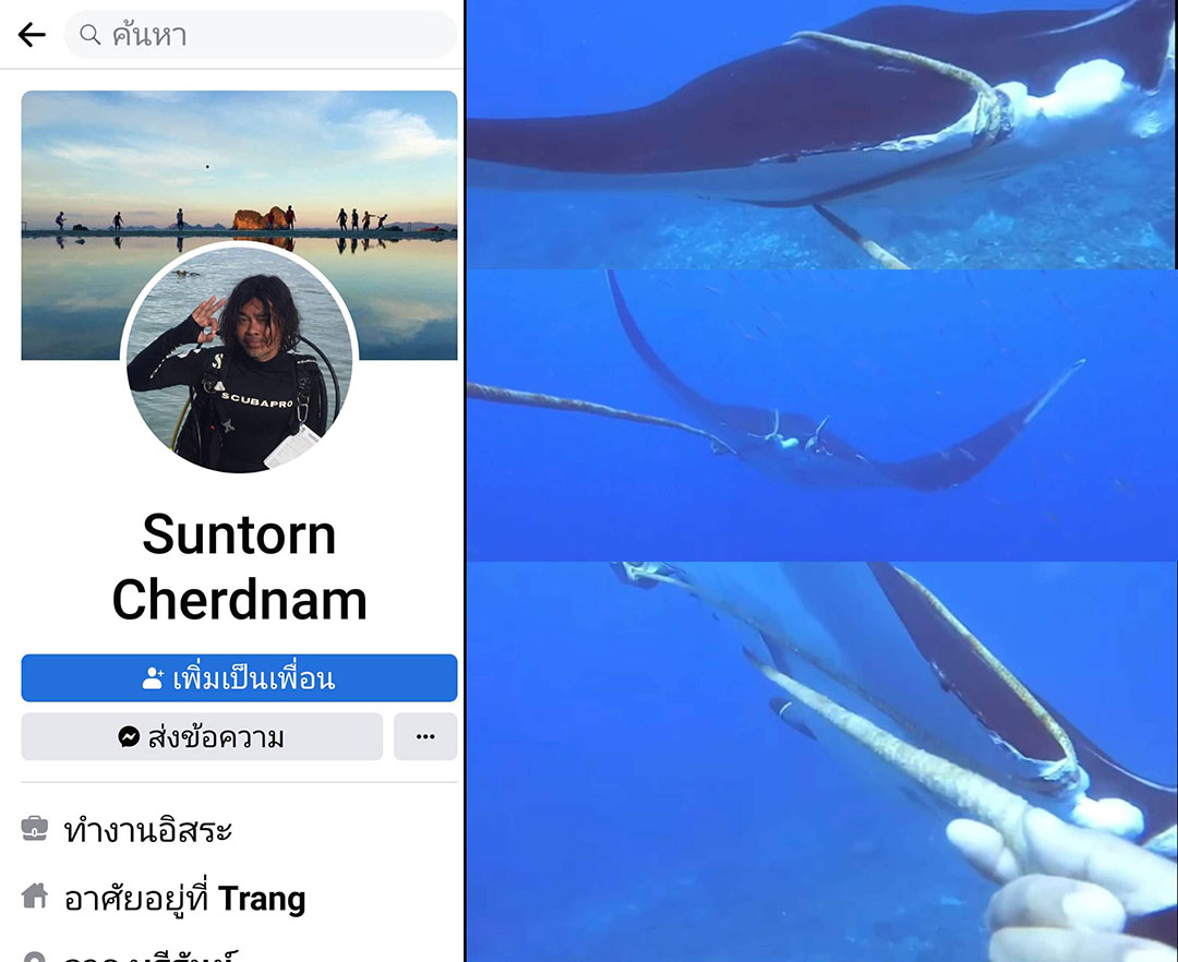 'นักดำน้ำ'เผยภาพถ่าย 'กระเบนแมนตา' สภาพติดเชือกอวนกลางทะเลอันดามัน