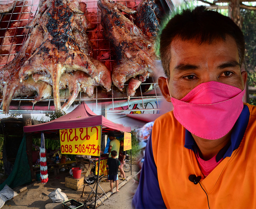 นครปฐม-พ่อค้าหนุ่มใหญ่ วัย 40 ปี ยึดอาชีพตามจับหนูนามาแปรรูปย่างปิ้ง ขายริมถนนมาลัยแมนนานกว่า 20 ปี เผยตอนนี้กระแสเนื้อห...