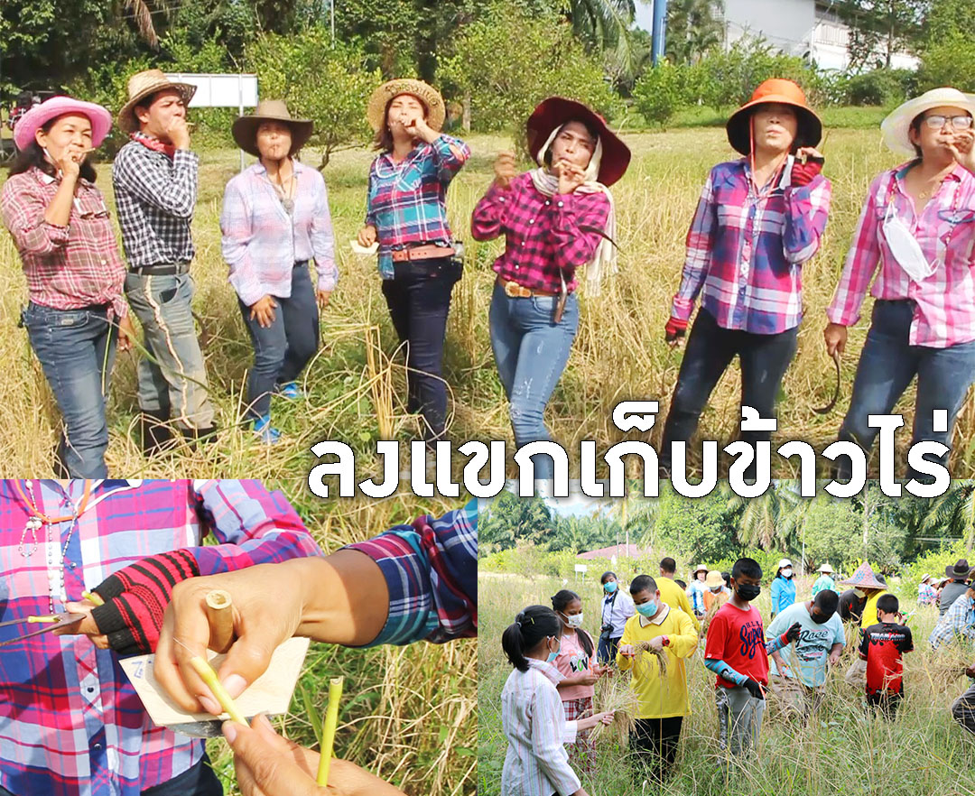 ครู-นันร.-ปชช.ลงแขกเก็บข้าวไร่ดอกข่า อนุรักษ์พันธุ์ข้าวไร่พื้นถิ่นของพังงา