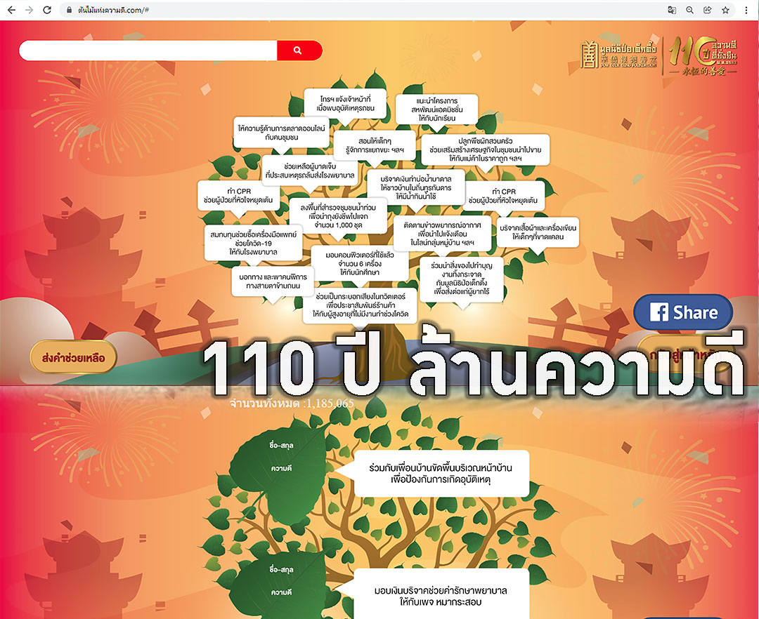 'มูลนิธิป่อเต็กตึ๊ง'ขอบคุณคนไทยร่วมสร้าง ยอด1.1 ล้านความดีครบรอบ110ปี