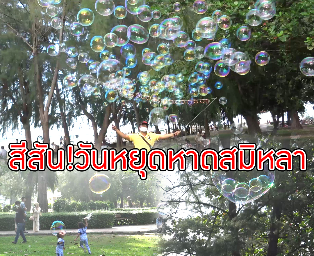 สีสัน!วันหยุดรวยๆชายหาดสมิหลาสงขลา Bubbleฟองสบู่ยักษ์เรียกเงินวันละ2-3พัน
