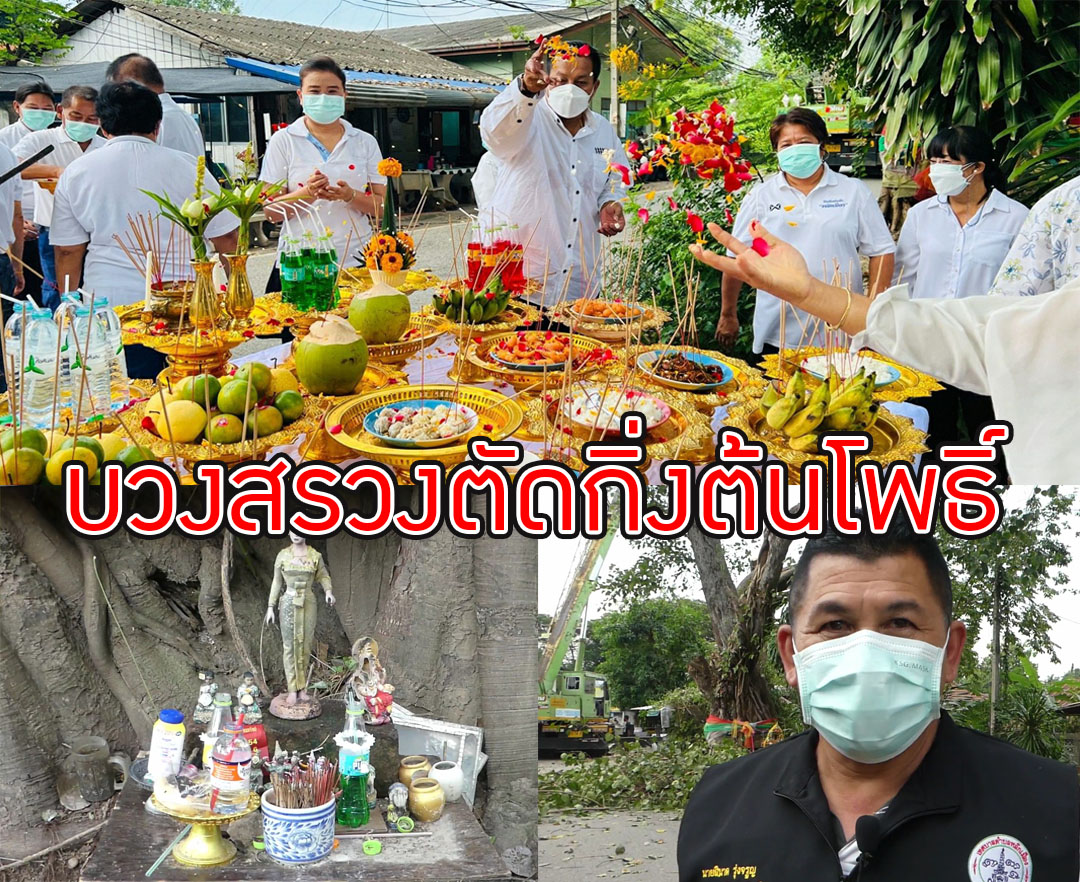 บวงสรวงขอขมาตัดกิ่งต้นโพธิ์คู่อายุกว่า200ปีขณะคอหวยแห่ส่องเลขเด็ด