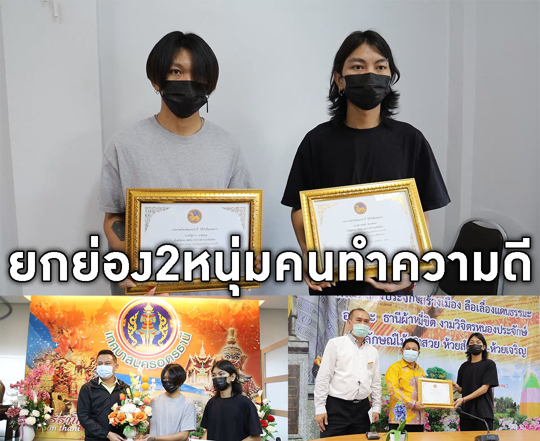 อุดรธานี-นอภ.เมืองอุดรฯพร้อมนายกเล็กมอบเกียรติบัตรยกย่องและเงินเป็นขวัญกำลังใจสองหนุ่มพลเมืองดี