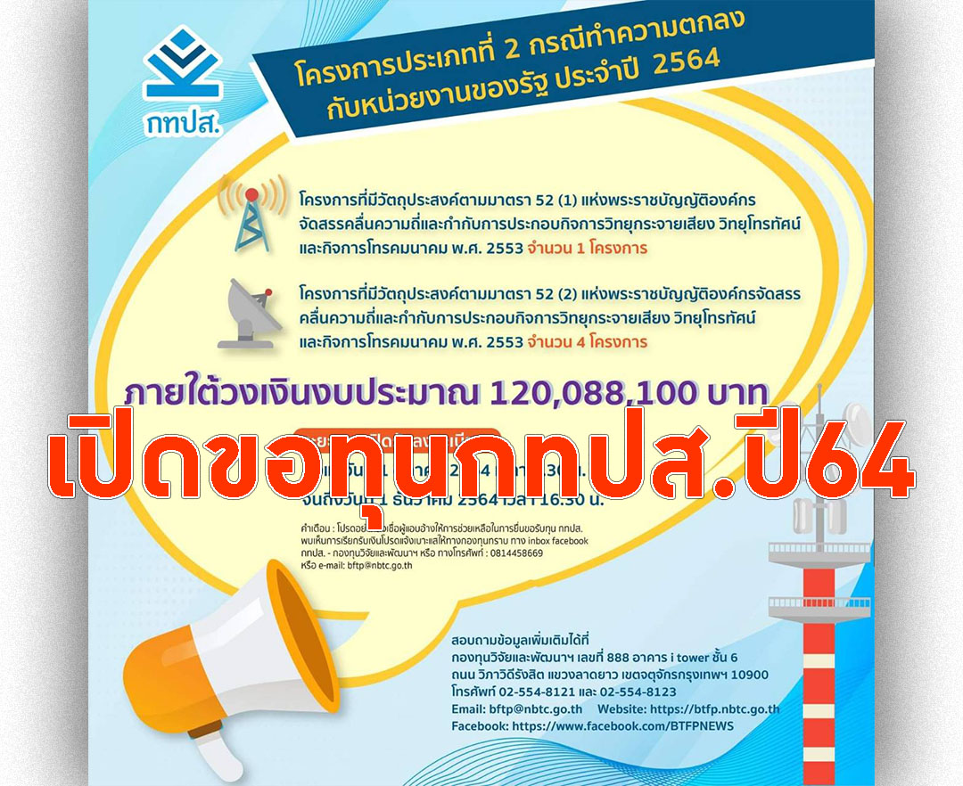 กทปส.ประกาศโครงการประเภทที่2ปี64 เปิดยื่นขอทุนพัฒนาผลงานด้านสื่อ
