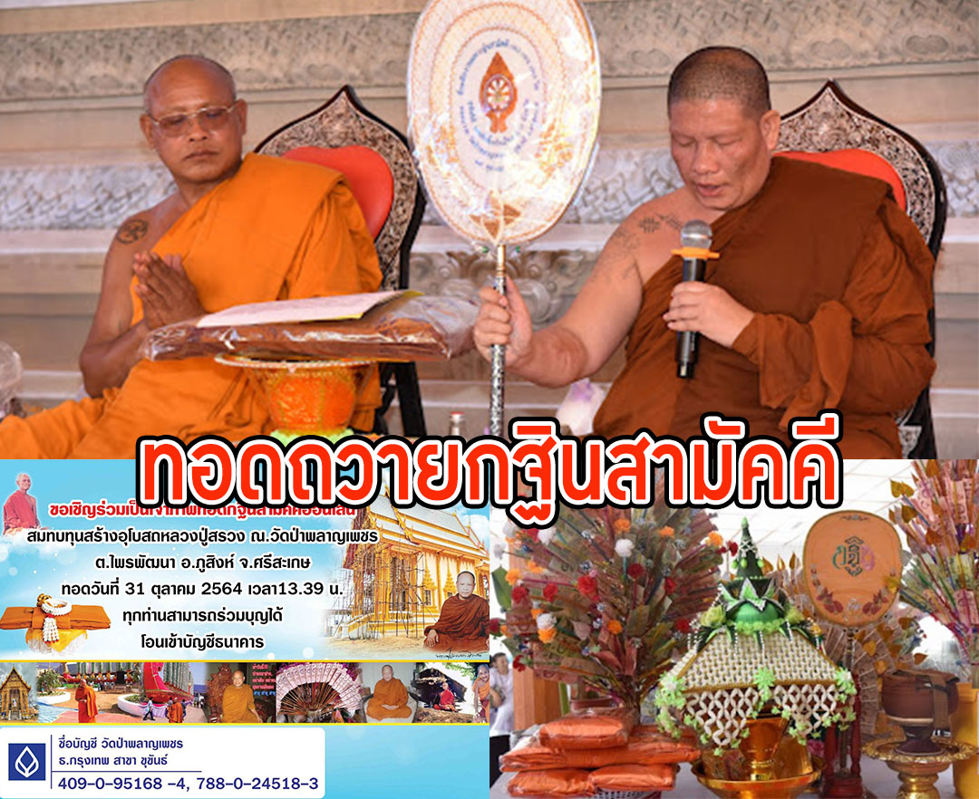 ศรีสะเกษ - วัดป่าพลาญเพชรขอเชิญชวนร่วมทอดถวายกฐินสามัคคีสมทบทุนสร้างอุโบสถหลวงปู่สรวงออนไลน์ ประจำปี 2564 ตำบลไพรพ...