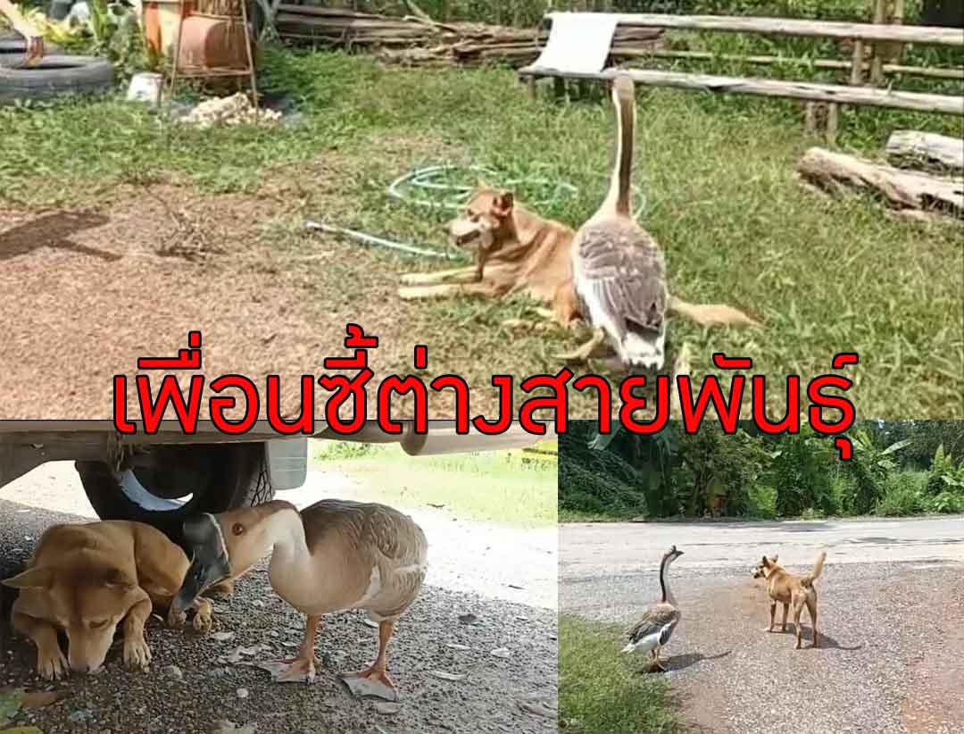 เรื่องแปลก!ห่านกับหมาเพื่อนซี้ต่างสายพันธุ์ติดตาม แจเหมือนคู่รัก
