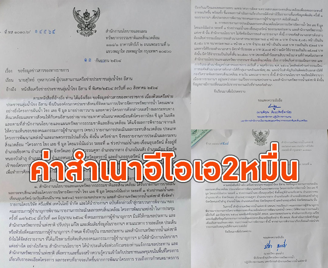อุดรธานี-โผล่อีก! สผ. สกัดเอ็นจีโอ. ตอบแจ้งกลับ หากประชาชนอยากได้สำเนาอีไอเอ. โครงการผันน้ำโขง เลย ชี มูล ต้องจ่ายก...