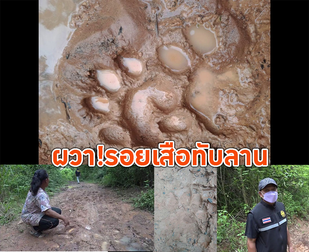 ชาวบ้านไทยสามัคคีพบรอยเสือทับลาน ท้ายหมู่บ้านแนวกันไฟป่า