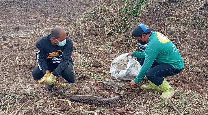 คนขับรถแบ๊คโฮผวางูเหลือมยักษ์5เมตร นอนขดทับไข่ไม่ไปไหนทั้งคืน