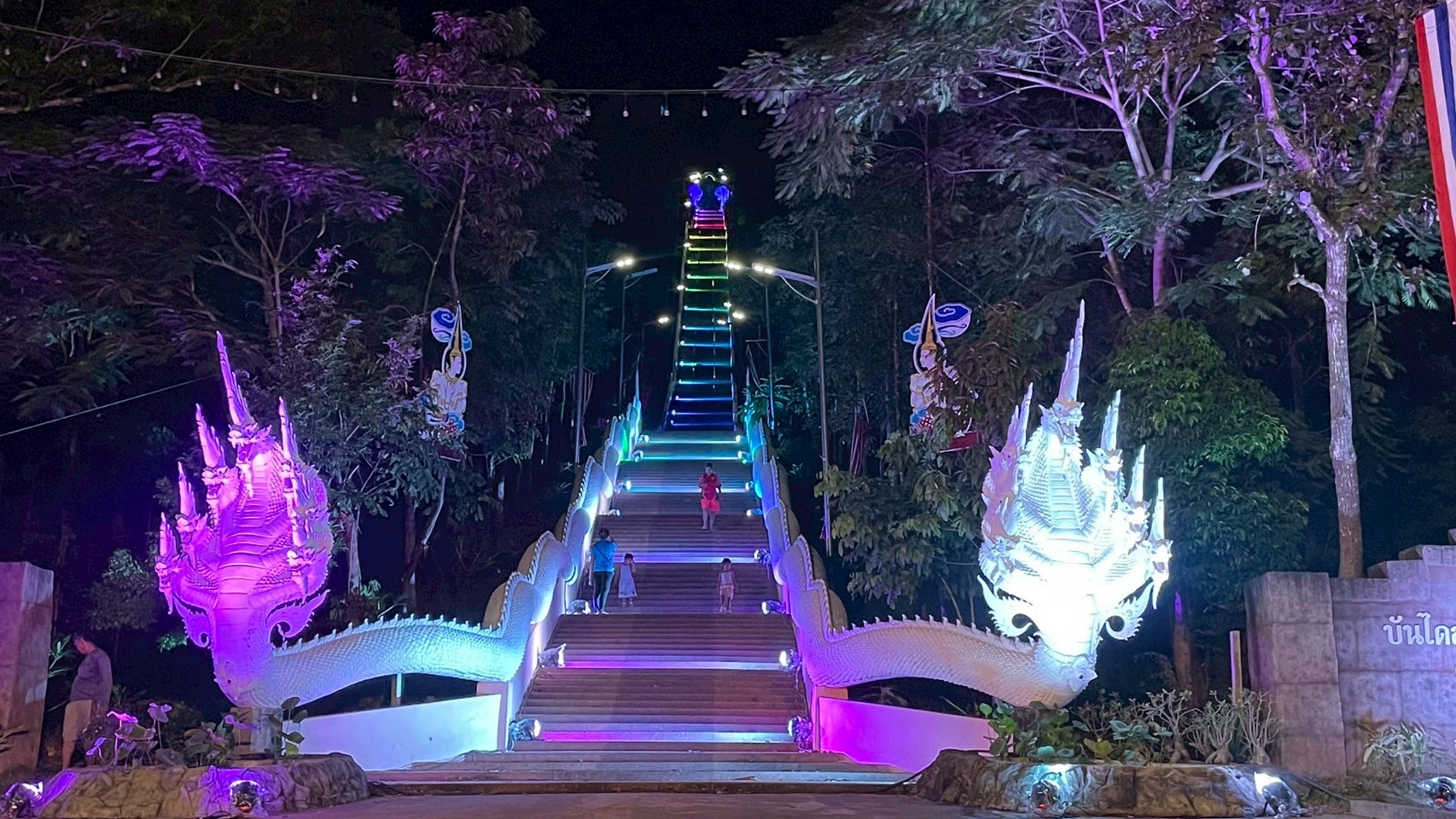 กาฬสินธุ์-วัดพุทธาวาสภูสิงห์ ประดับไฟบันไดสวรรค์ 654 ขั้น หรือประมาณ 1.5 กม. พร้อมไฟสวยงามบนลานธรรม มรรค 8 บนยอดเขาภูสิง...