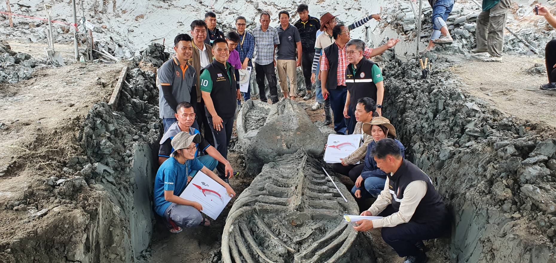 'รมว.ทรัพยากรฯ'ดูขุดค้นซากกระดูกวาฬ คาดเป็นวาฬบรูด้าดึกดำบรรพ์นับ5พันปี
