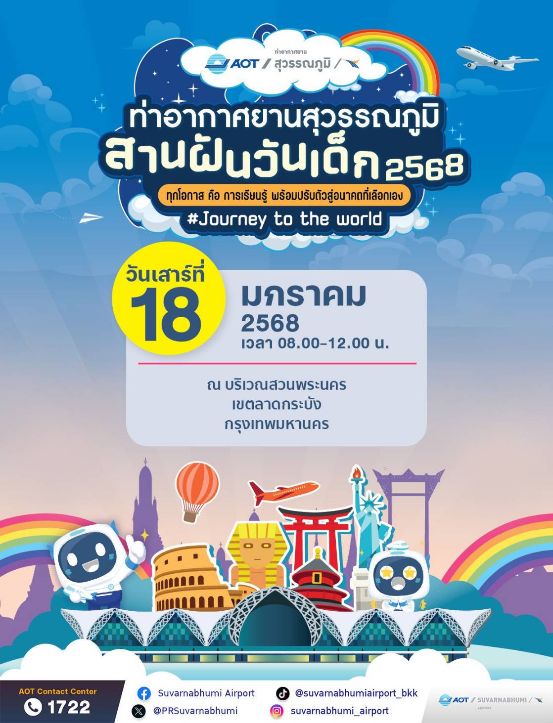 สมุทรปราการ-ท่าอากาศยานสุวรรณภูมิ (ทสภ.) ขอเชิญชวนผู้ปกครองทุกท่านพาบุตรหลานเข้าร่วมกิจกรรมวันเด็ก ประจำปี 2568 ที่บูธกิ...