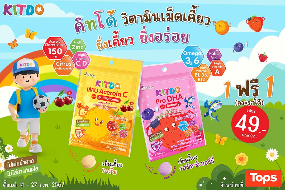 'คิทโด้'เป็นวิตามินเม็ดเคี้ยว2สูตร2รสชาติ จัดโปรโมชั่นสุดคุ้มซื้อ1แถม1ที่Tops