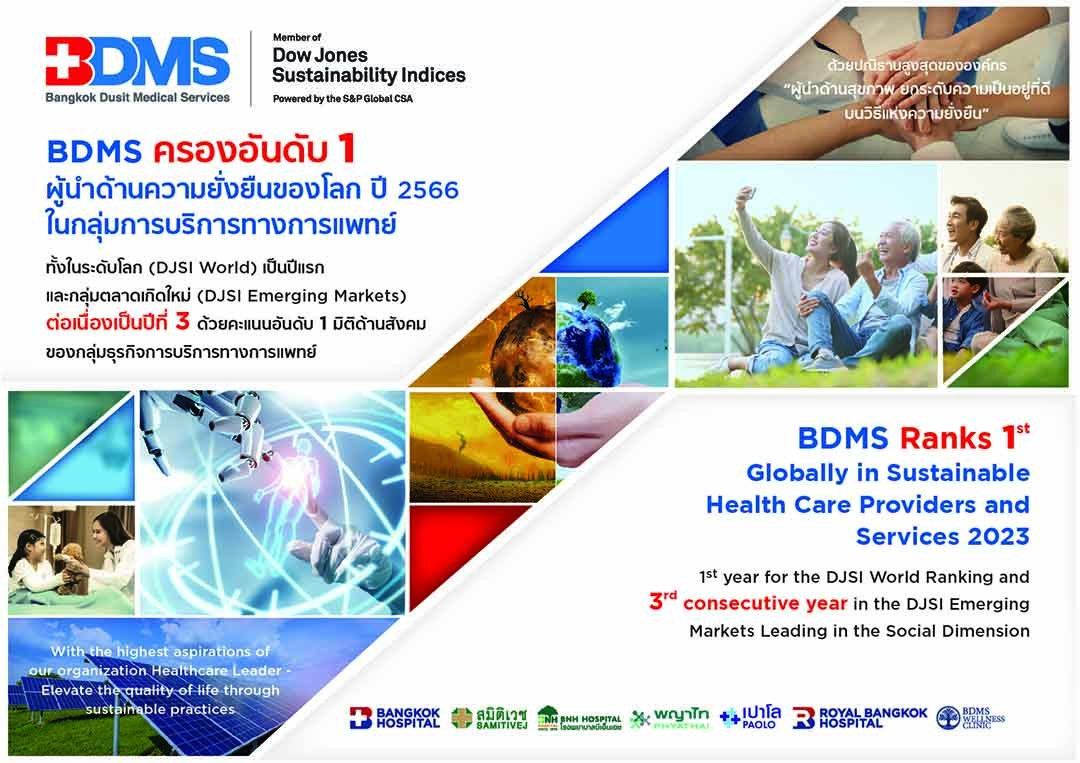 BDMSขึ้นที่1ผู้นำระดับโลก(DJSI World) กลุ่มการบริการทางการแพทย์ปี2023