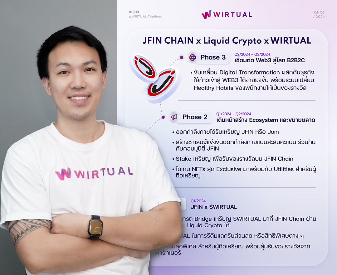 WIRTUALเป็นแอปฯออกกำลังกายสุดฮิต จับมือกับ JFIN Chain/Liquid Crypto