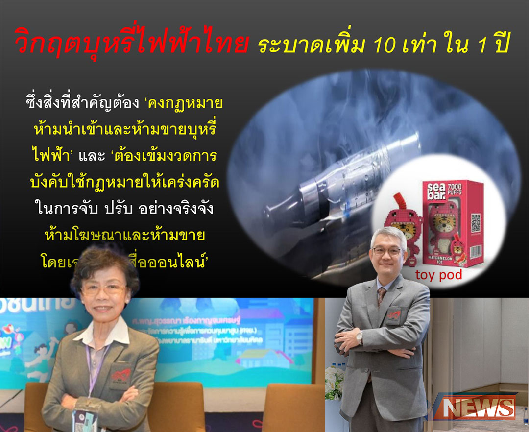 เผยบุหรี่ไฟฟ้าไทยระบาดเพิ่ม10เท่าใน1ปี สถิติฯชี้ปี64แค่7.8หมื่นปี65พุ่ง7แสนคน