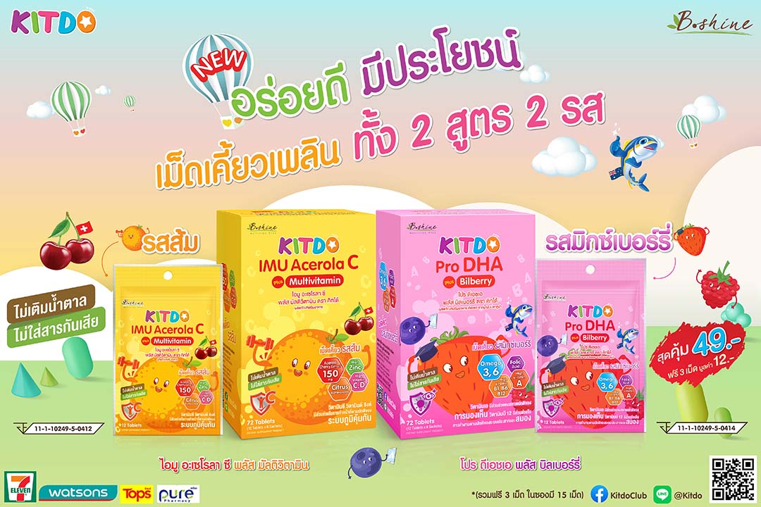 'บีไชน์ 'แตกแบรนด์น้องใหม่ชื่อ'คิทโด้' วิตามินเม็ดเคี้ยวอร่อยมีประโยชน์เสริมภูมิ