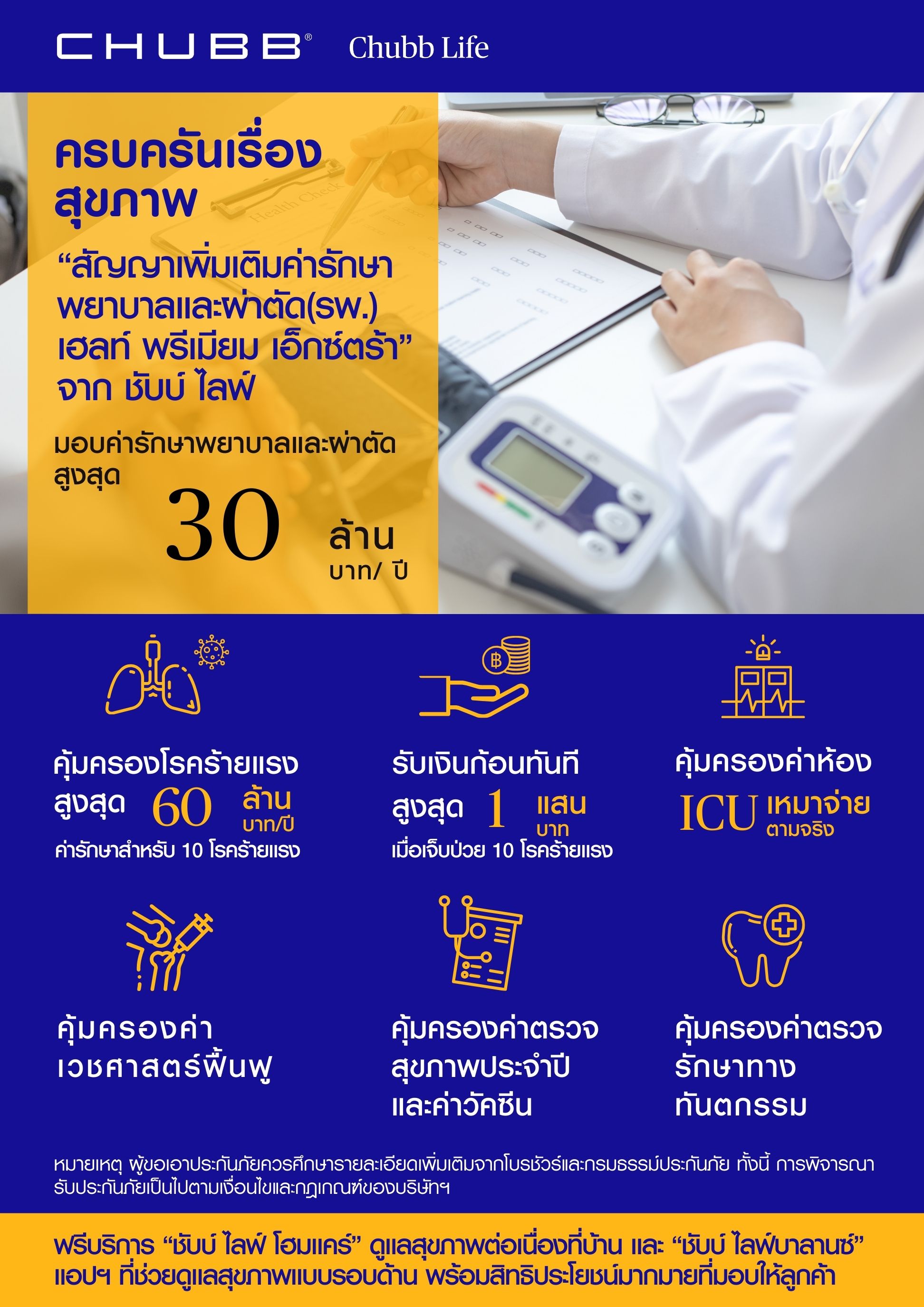 'ชับบ์ ไลฟ์'เดินหน้าปล่อยประกันสุขภาพ ตรงใจลูกค้าจัดเต็มทุกความคุ้มครอง