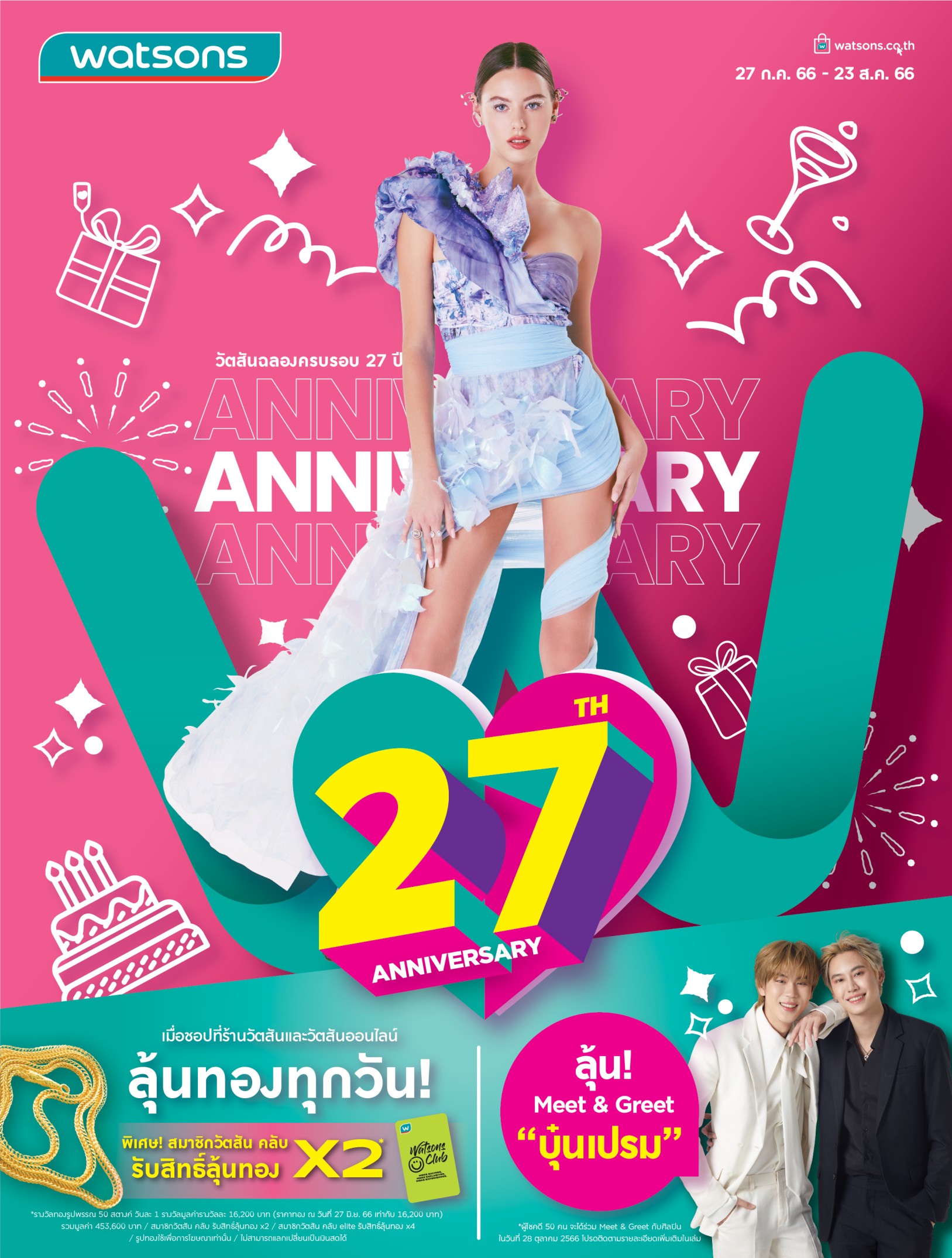 ฉลองครบ27 ปี!วัตสันปล่อยแคมเปญชอป ไอเท็มเด็ดราคาเริ่มต้นเพียง27บาท