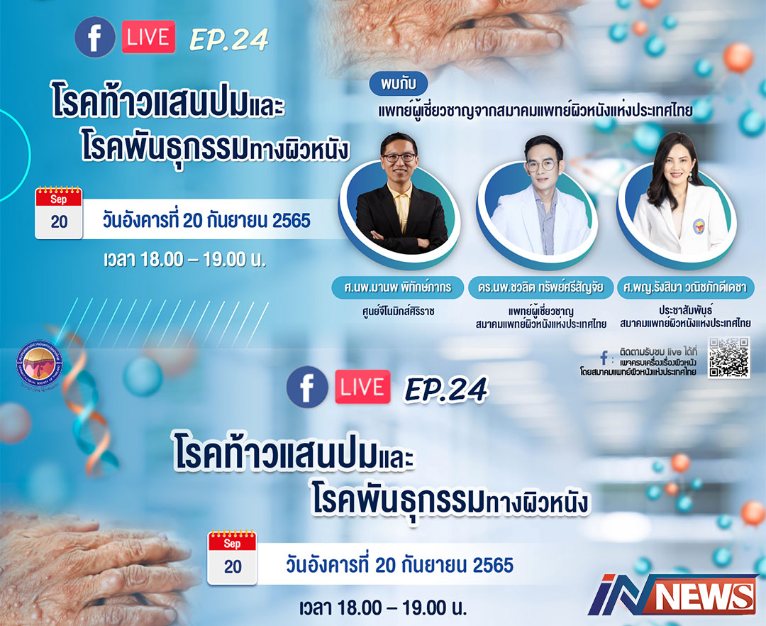 สมาคมแพทย์ผิวหนังฯ เชิญรับชมเพจเฟซบุ๊ก“ครบเครื่องเรื่องผิวหนัง”EP.24 ตอน“ท้าวแสนปมและโรคพันธุกรรม...