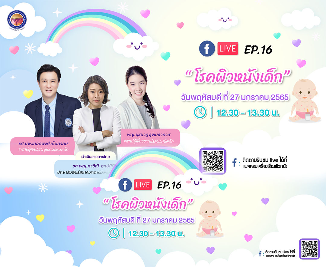 สมาคมแพทย์ผิวหนังฯเชิญชมเพจเฟซบุ๊ก EP.16ตอน'โรคผิวหนังเด็ก'