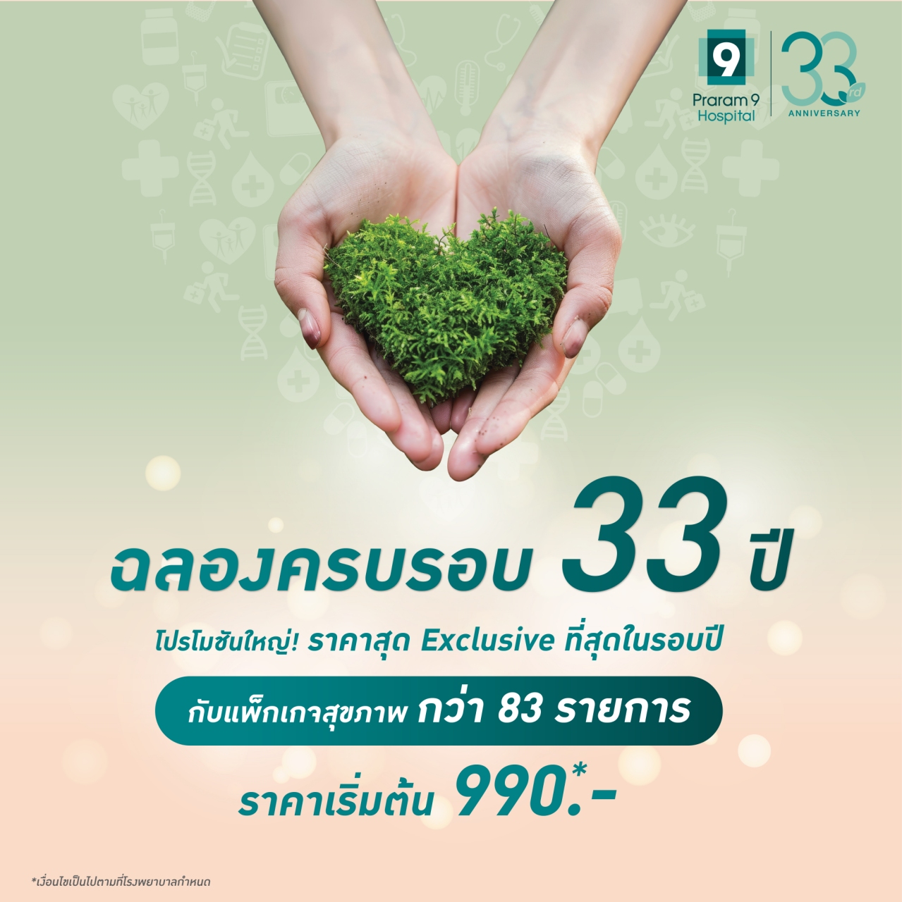 กรุงเทพฯ-ในโอกาสครบรอบ 33 ปี โรงพยาบาลพระรามเก้า ขอขอบคุณทุกความไว้วางใจจากผู้ใช้บริการ ด้วยการจัดแคมเปญสุขภาพ...