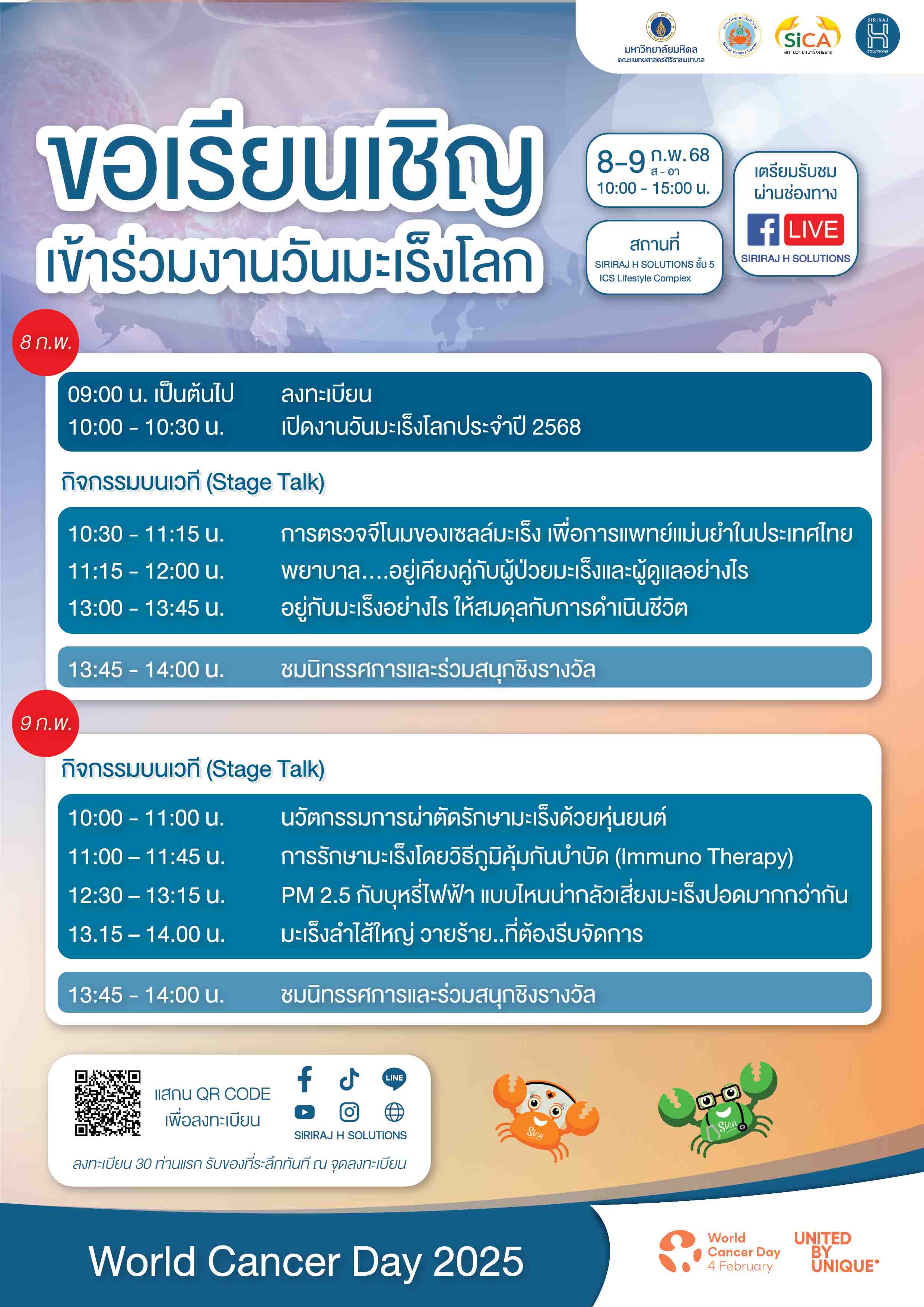 ไอซีเอสฯร่วมกับสถานวิทยามะเร็งศิริราช จัด'งานวันมะเร็งโลกประจำปี2568'