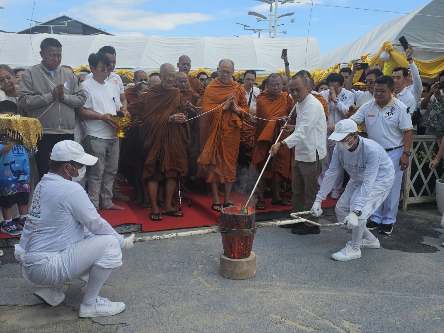 สาธุชนร่วมพิธีหล่อหลวงปู่บัวเกตุ ปทุมสิโร ขนาดสูง2.65เมตรที่รพ.พัทยาปัทมคุณ