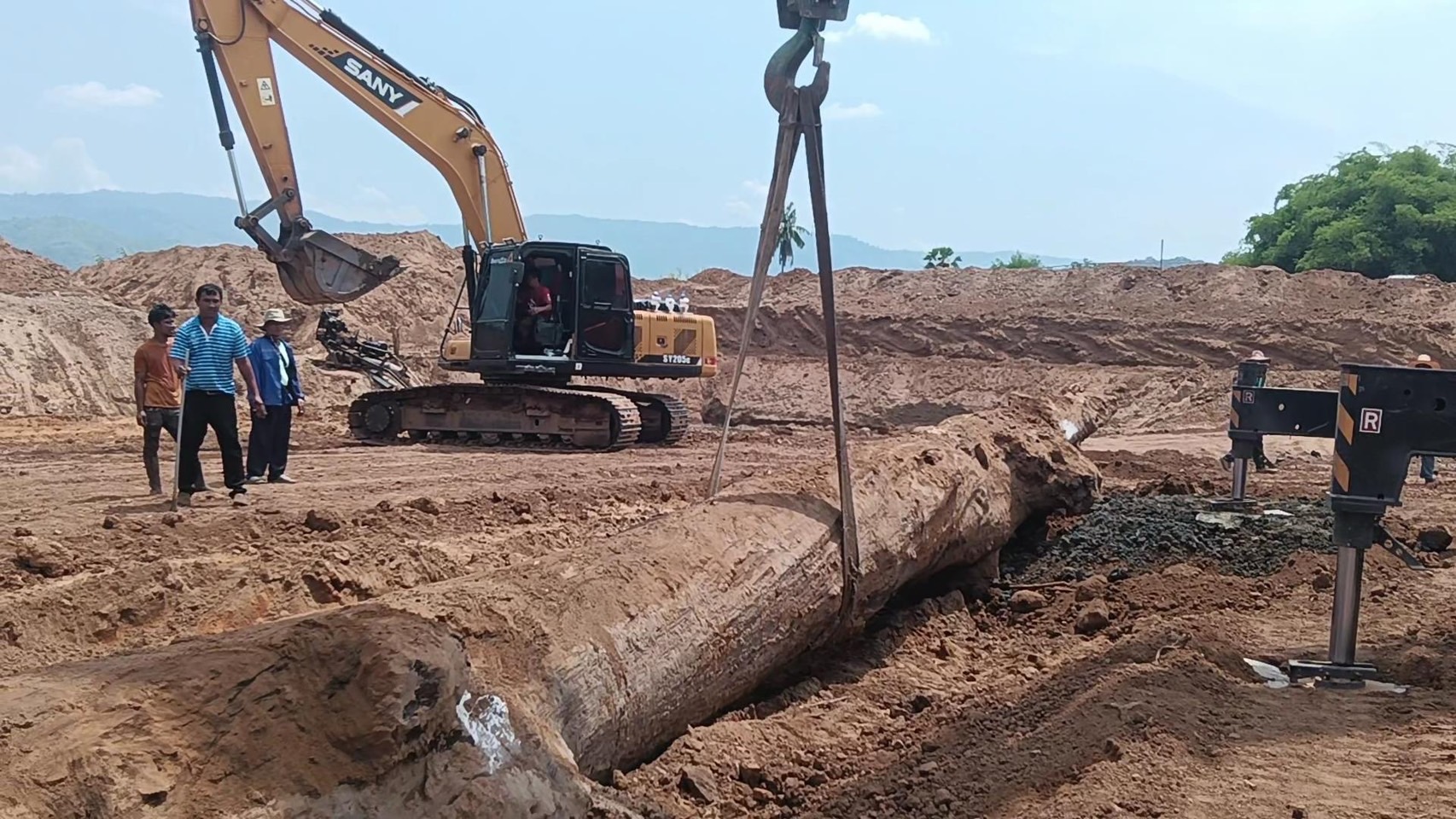 ฮือฮา!แบ็กโฮขุดบ่อพบต้นตะเคียนยักษ์ กว่า1พันปีคอหวยแห่ขอเลขเด็ดคึกคัก