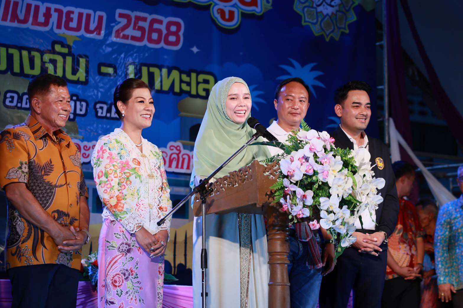 พังงา-ผู้ว่าราชการจังหวัดพังงา ร่วมต้อนรับ ซาบีดา ไทยเศรษฐ์ มท.3 ประธานเปิดงานเมาลิดกลางตำบลหล่อยูง ท่ามกลางบรรยากา...