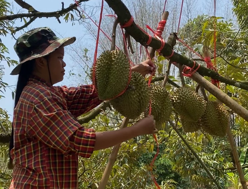 ชาวสวนทุเรียนเมืองจันท์หวั่นถูกพายุลม กระโชกแรงรีบเร่งใช้ไม้ไผ่ค่ำเชียกโยง