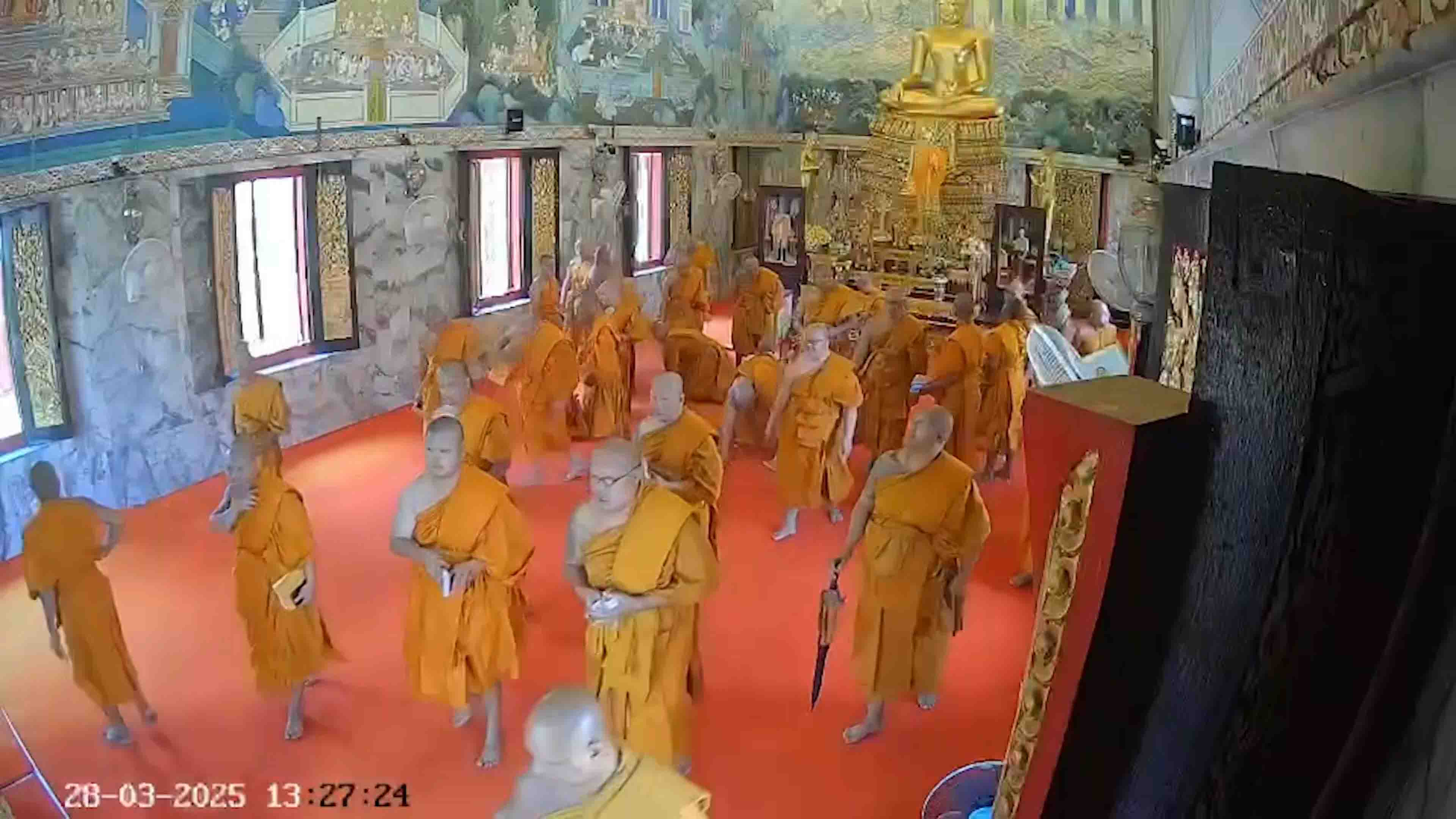 นครปฐม-คณะสงฆ์วัดไผ่ล้อม นำโดย หลวงพี่น้ำฝนพี่น้ำฝน เข้าพิธีปาติโมกข์ภายในโบสถ์ช่วงเกิดแผ่นดินไหว พระสงฆ์รับรู้ถึงแรงสั่...