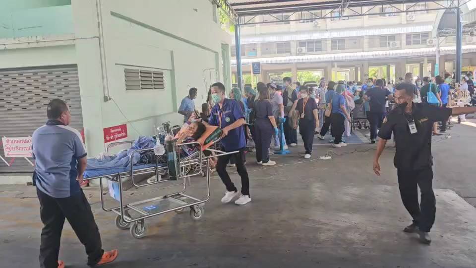 ลพบุรี-โรงพยาบาลสมเด็จพระนารายณ์ อพยพผู้ป่วยออกไปไว้ที่ปลอดภัย หลังแผ่นดินไหวสั่นสะเทือนเกรงจะเกิดอาฟเตอร์ช็อก