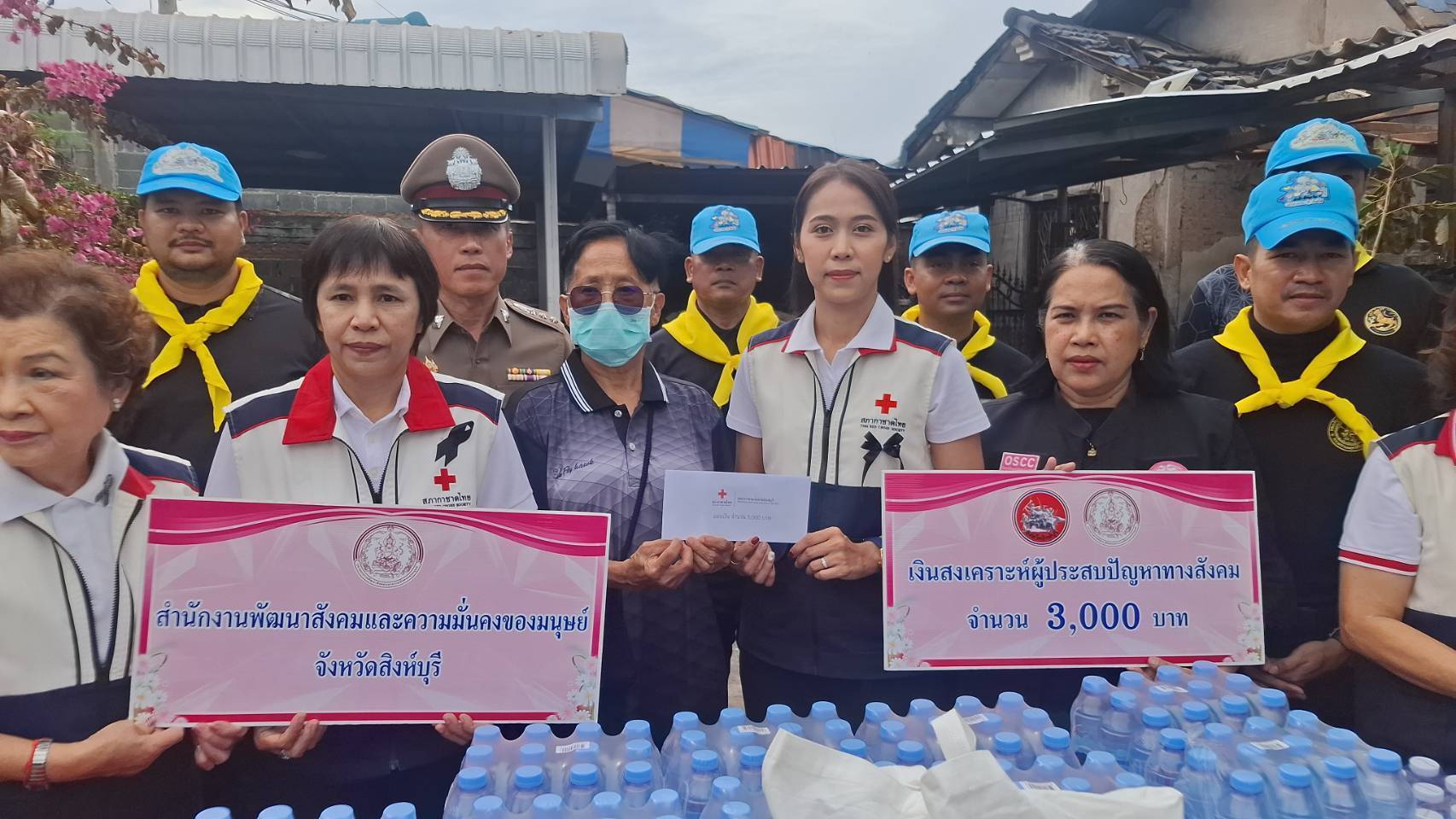 เหล่ากาชาดสิงห์บุรีลงพื้นที่เยี่ยมชาวบ้าน มอบสิ่งของผู้ประสบอัคคีภัย