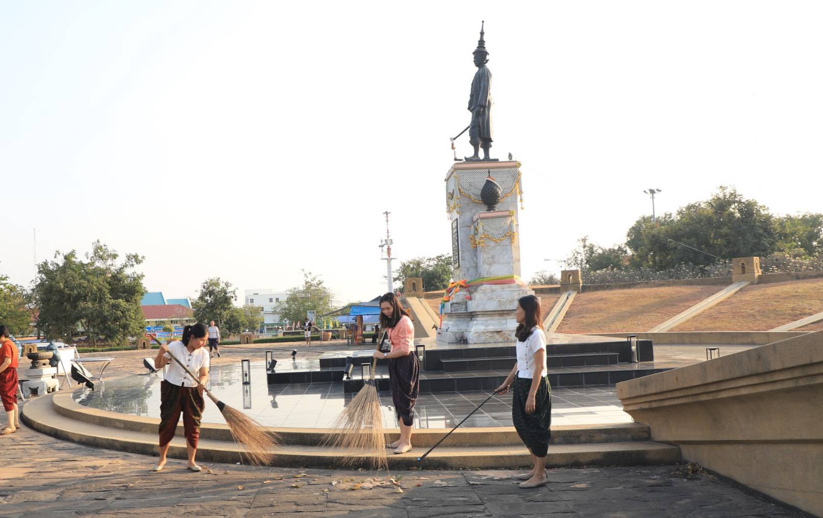 ขรก.ลพบุรีสลัดกระโปรงนุ่งโจงแต่งไทย ร่วมใจปรับภูมิทัศน์ในวงเวียนเทพสตรี