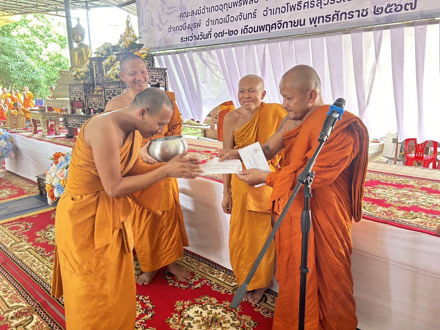 ศรีสะเกษ-หลวงปู่โชติ มอบทุนหนุนการศึกษาพระสอบนักธรรมชั้นโท ชั้นเอก บริจาครั้วสแตนเลสประดิษฐานพระพุทธรูปหน้าโรงพัก