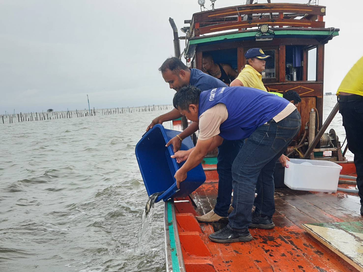 นอภ.ท่าฉางจัดทัพปล่อยปลากระพงกำจัด ปลาหมอคางดำฟื้นความสมดุลนิเวศ