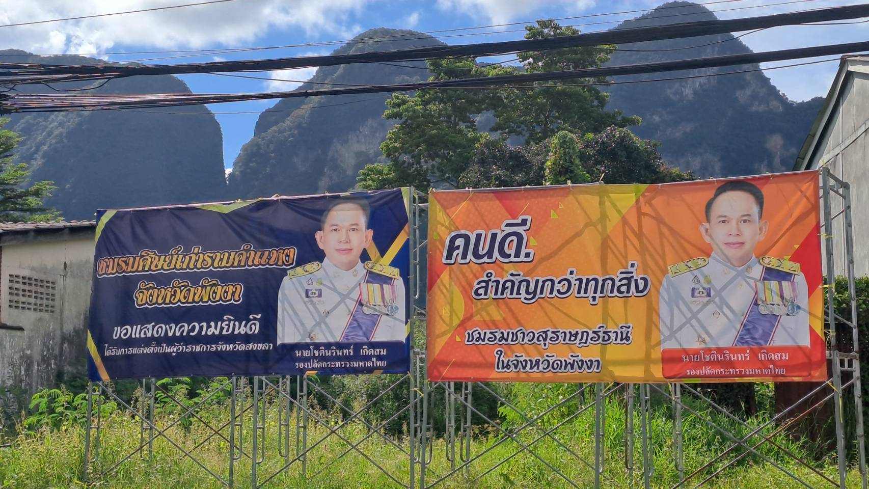 พังงา-ป้ายให้กำลังใจและแสดงความยินดีกับนายโชตินรินทร์ผู้ว่าสงขลาโผล่ที่พังงา แกนนำภาคประชาสังคมโพสต์ชื่นชมการทำงาน