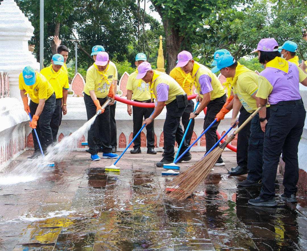 ร้อยเอ็ดจิตอาสาล้างวัดใหญ่ศรีมหาธาตุ เนื่องในวันคล้ายวันพระบรมราชสมภพร.4