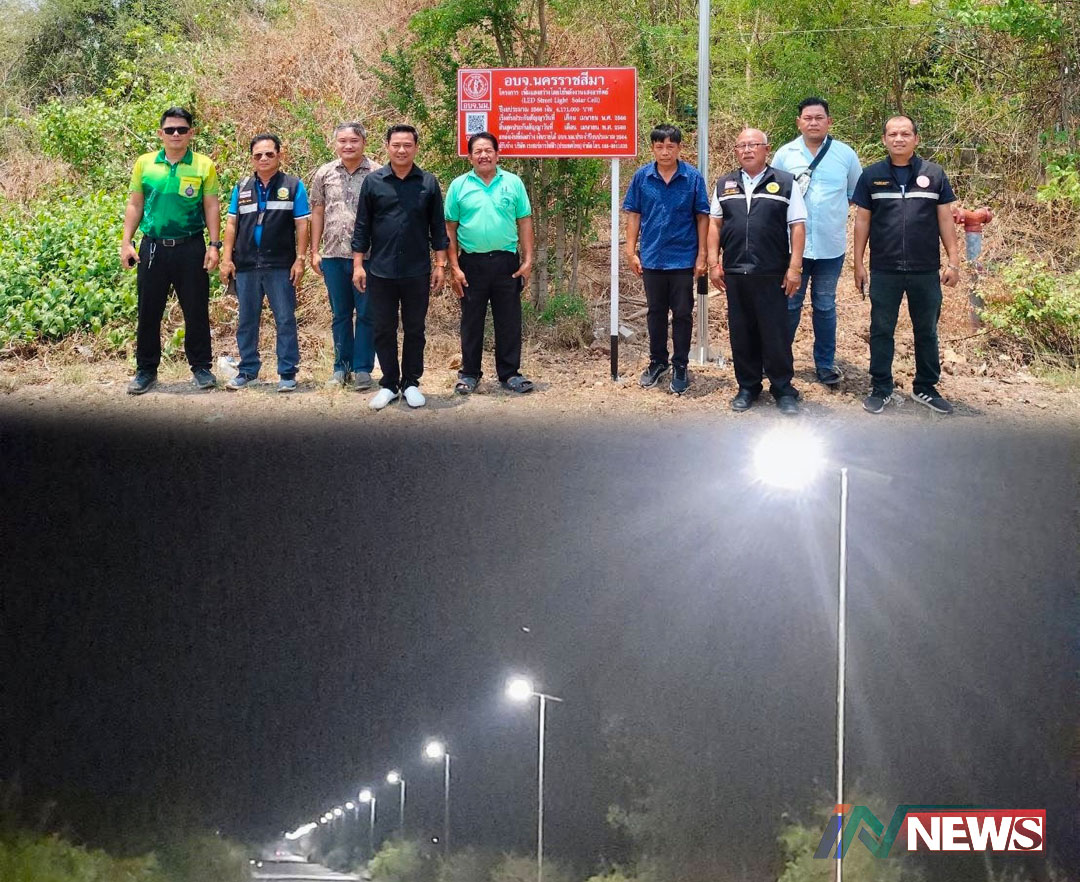 อบจ.โคราชอัดงบฯกว่า4ล้านบาทติดตั้ง ไฟโซล่าเซลล์80ต้นเพิ่มไฟสว่างให้ถนน