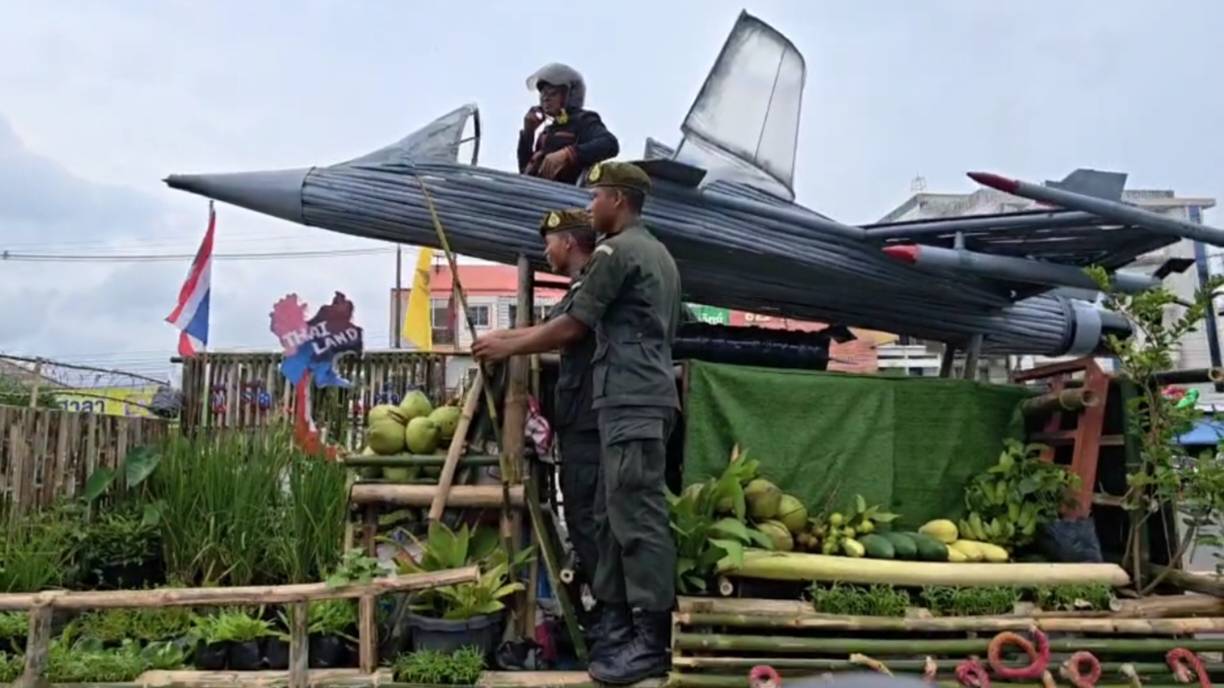 ชาวบ้านฮือฮาขบวนแห่'กริพเพน'บินว่อน กลางเมืองขุขันธ์ในงาน'แซนโฎนตา'