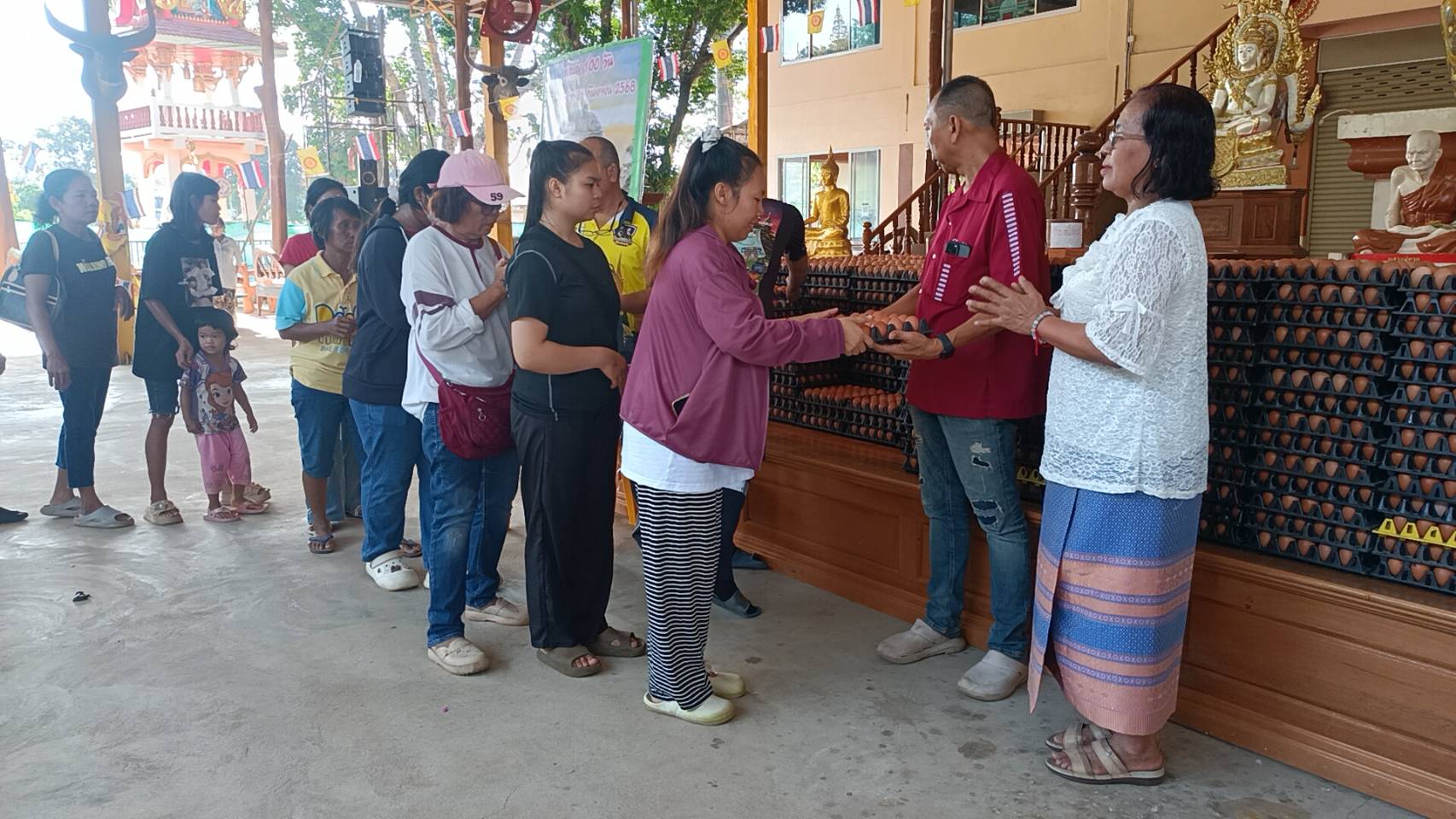 แม่!ทุ่มทำบุญเพื่อลูกจัดใหญ่ครบ100วัน แจกไข่1.5พันแผงหมูหันหวยรัฐ500ใบ