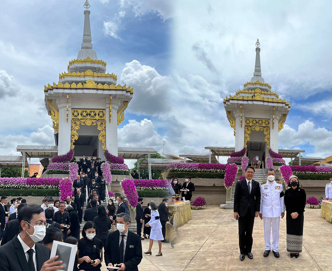 พ่อเมืองกาญจน์ร่วมพิธีพระราชทานเพลิง คุณแม่อธิบดีกรมที่ดินเมรุวัดพระศรีฯ
