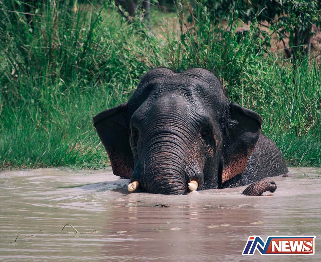 นครนายก-ช้างป่าพลายนทีหลงฝูงเดินเข้าสวนผลไม้ชาวบ้านเข้าเขตแหล่งชุมชนหมู่บ้านศรีนาวาเกรงชาวบ้านจะได้รับอันตราย