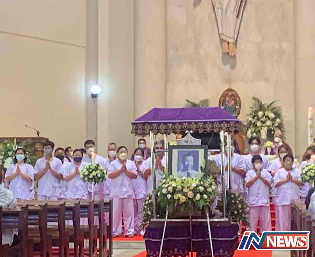 นครปฐม-ปิดตำนานก๋งเล็กผ้าขาวม้า ตำนานผ้าขาวม้าคาดเอว วัย 91 ปี ครอบครัว บุตรหลาน และผู้รักใคร่ร่วมพิธิมิสซาศพ อันตน อรรถ...